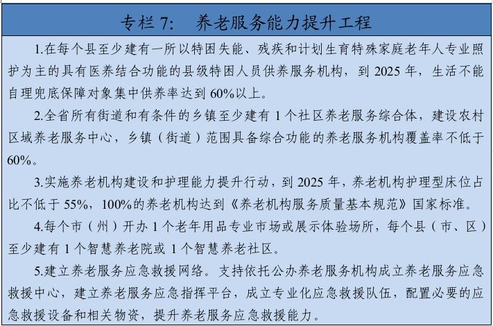 ——基本社会服务更加有效。基本养老服务制度全面建立,居家社区机构相协调、医养康养相结合的养老服务体系更加完善。未成年人保护工作机制更加系统完备,地名、婚姻、殡葬等服务管理更加科学有效,普惠均等和智能精准程度同步提高。