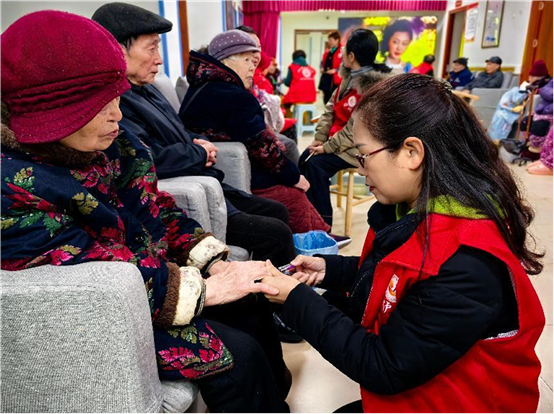 “温情陪伴队” 以陪伴与关怀为“抓手”,给予老人心灵慰藉。志愿者们围坐在老人身边,亲切地与老人聊天。听老人回忆往昔,讲述曾经故事,志愿者们专注倾听,适时点头回应,有时还好奇追问细节,让老人的记忆尽情流淌。有的老人还积极关心当下热点,与志愿者们热烈讨论,分享彼此观点。同时,志愿者们还轻轻握住老人的手,小心翼翼地用指甲刀为老人修剪指甲,动作轻柔,尽显细心,让老人们真切感受到无微不至的关怀。