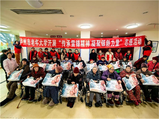 3 月 19 日上午,泸州市老年大学 “酒城银龄” 老年志愿服务队走进江阳区南城街道禾为天养苑养老服务中心,开展了一场主题为“传承雷锋精神 凝聚银龄力量”的志愿服务活动,以实际行动弘扬雷锋精神,为老人们送去关爱与温暖。活动分为三个小队,各展其长,让老人们感受全方位的贴心服务。