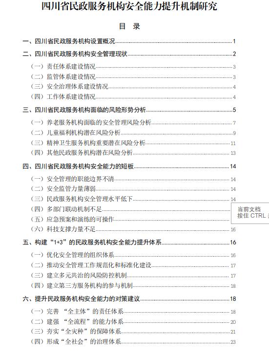 课题研究项目8个:《老年认知障碍照护体系研究》、《全面推进新时代四川民政标准化工作研究》、《行业协会商会服务构建新发展格局研究》、《促进共同富裕背景下的小城镇困难群众基本生活保障情况调查研究》、《新时代婚姻登记机关建设方向和路径研究》、《四川民政精神卫生福利体系建设研究》、《四川省社区综合服务能力提升研究》、《四川省民政服务机构安全能力提升机制研究》。