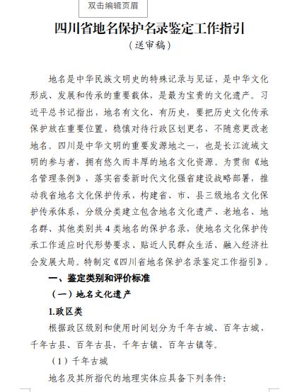 标准化制定项目3个:《四川省地名文化遗产保护名录类别与代码编制规范》、《四川省地名保护名录鉴定工作指引》、《四川省社区老年助餐服务规范》。