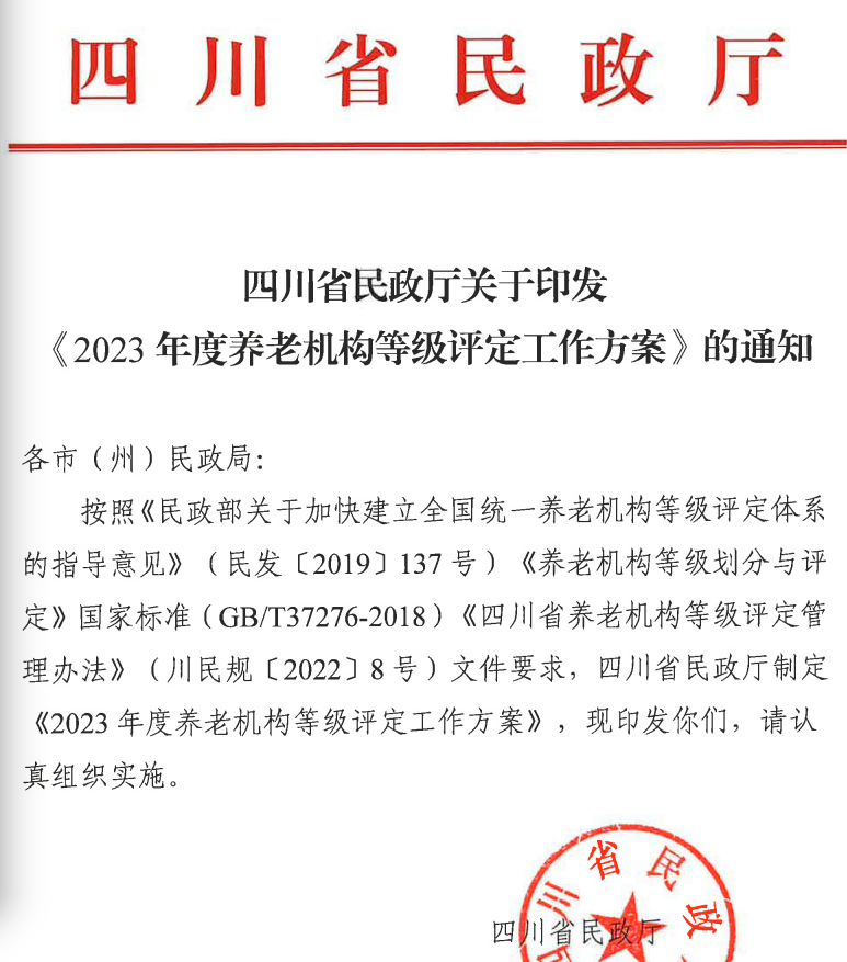 实际效果:已完成对养老服务机构等级评定工作的实地调研及相关评估,《四川省养老机构等级划分评定指标体系》的修订稿已提交。