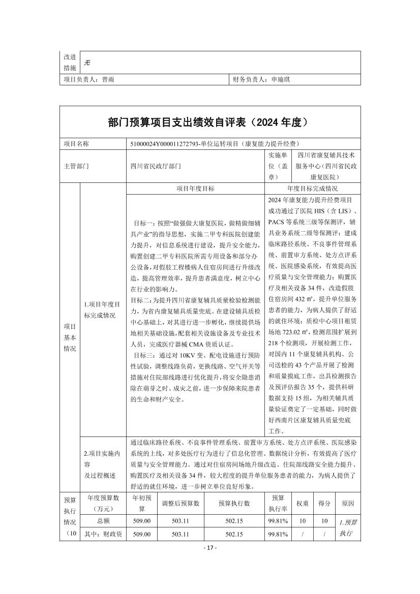 四川省康复辅具技术服务中心(四川省民政康复医院)2024年度单位决算公开表