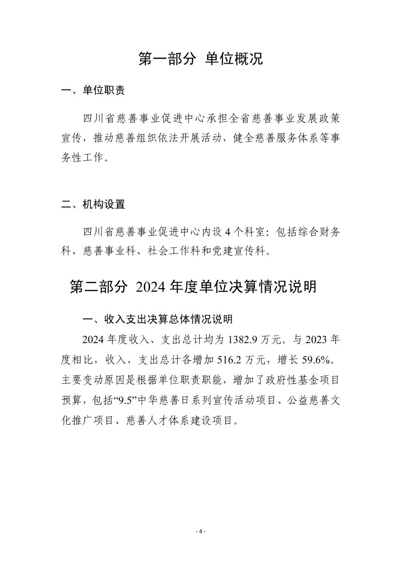 四川省慈善事业促进中心2024年单位决算公开编制说明