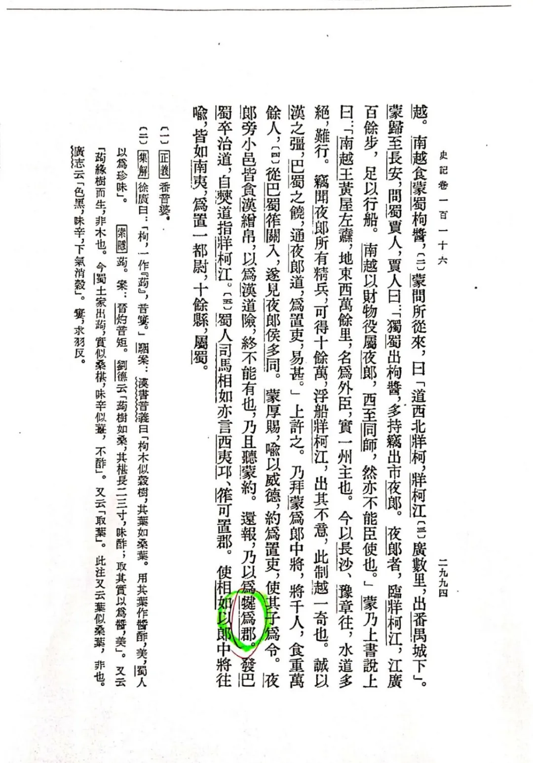 西汉司马迁《史记》卷116《西南夷列传》里,汉武帝派唐蒙开西南夷设“犍为郡”的最早记载(罗家祥提供)