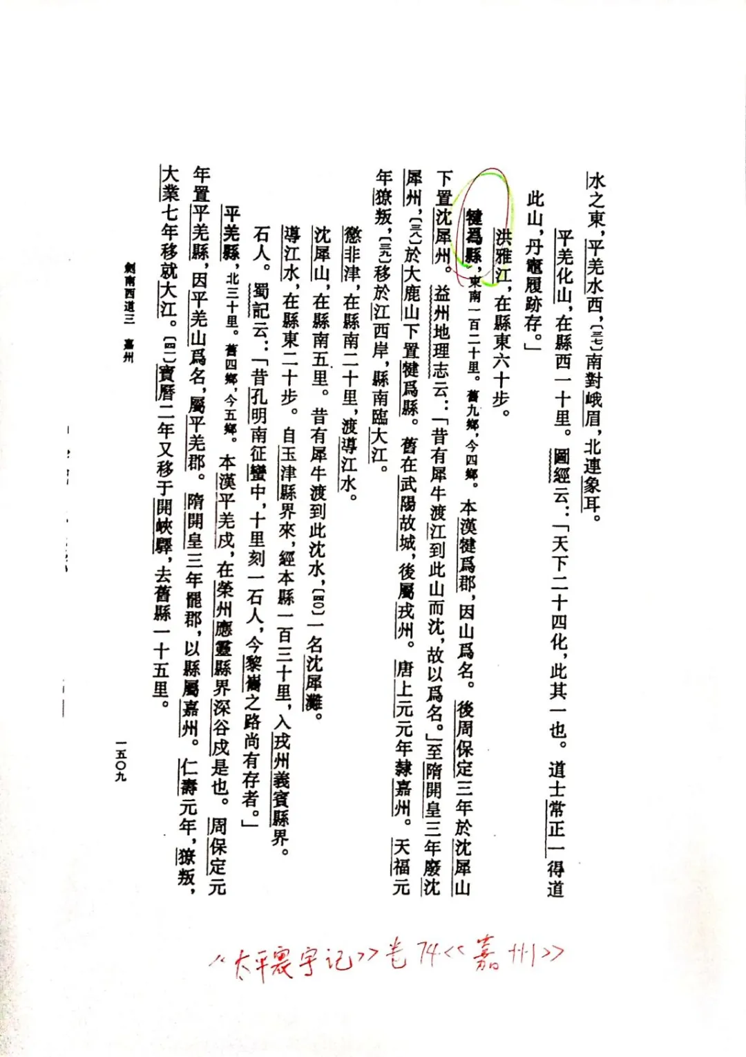唐《元和郡县图志》卷74《嘉州》关于犍为县的记载(罗家祥提供)