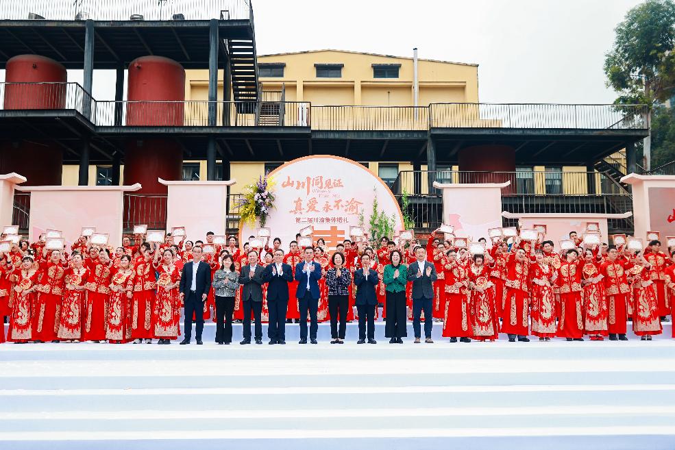 集体婚礼以“山川同见证·真爱永不渝”为主题,将川渝地域风情与文明婚俗新风巧妙融合,为婚俗改革增添了生动的注脚。李练副厅长在证婚致辞中表示:通过举办集体婚礼,既旗帜鲜明地反对天价彩礼、反对铺张浪费,培育新型婚育文化,让婚姻回归本真,也让爱情更有温度,让“为爱减负”成为文明婚俗新共识。倡议让更多美好的爱情跨越山海交汇在川渝,让更多年轻的梦想和川渝共建同频共振。