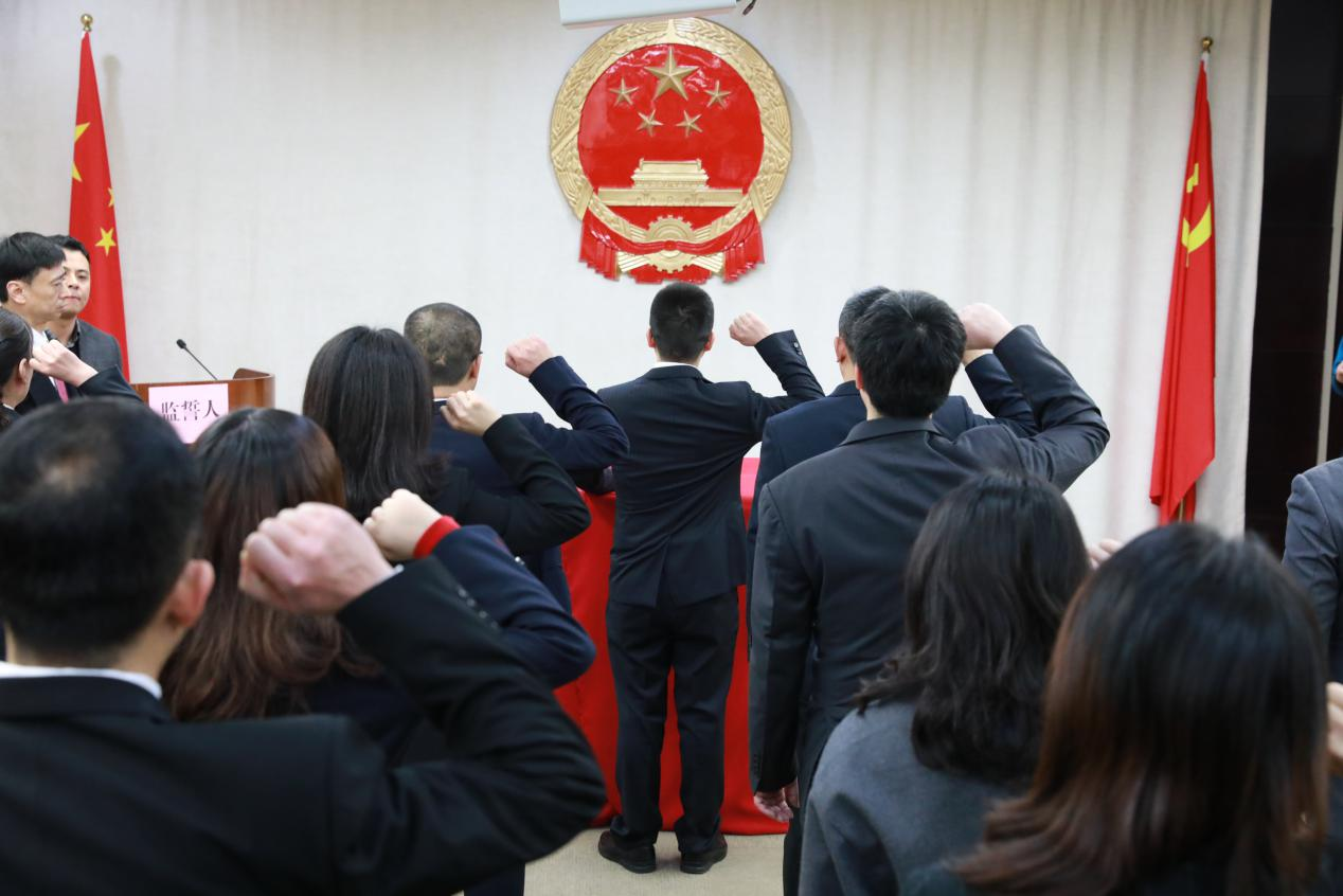 12月26日上午,成都市民政局在局机关会议室举行宪法宣誓仪式,宣誓人员为今年来任命的20名国家工作人员。成都市民政局党组成员、机关党委书记江维监誓。