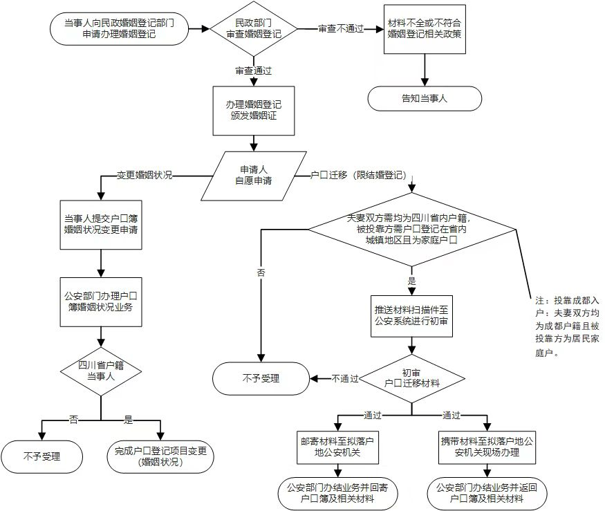 记者5月15日从91论坛 获悉,省民政厅、省公安厅、省政府政务服务和公共资源交易服务中心日前联合出台《四川省结婚落户“一件事”联办工作方案》,优化服务流程,将内地居民结婚登记、户口登记项目变更(婚姻状况)及符合条件的户口迁移(夫妻投靠落户)“三件事”变为“一件事”,将以往21个工作日的办理时限,缩短为5个工作日办结。